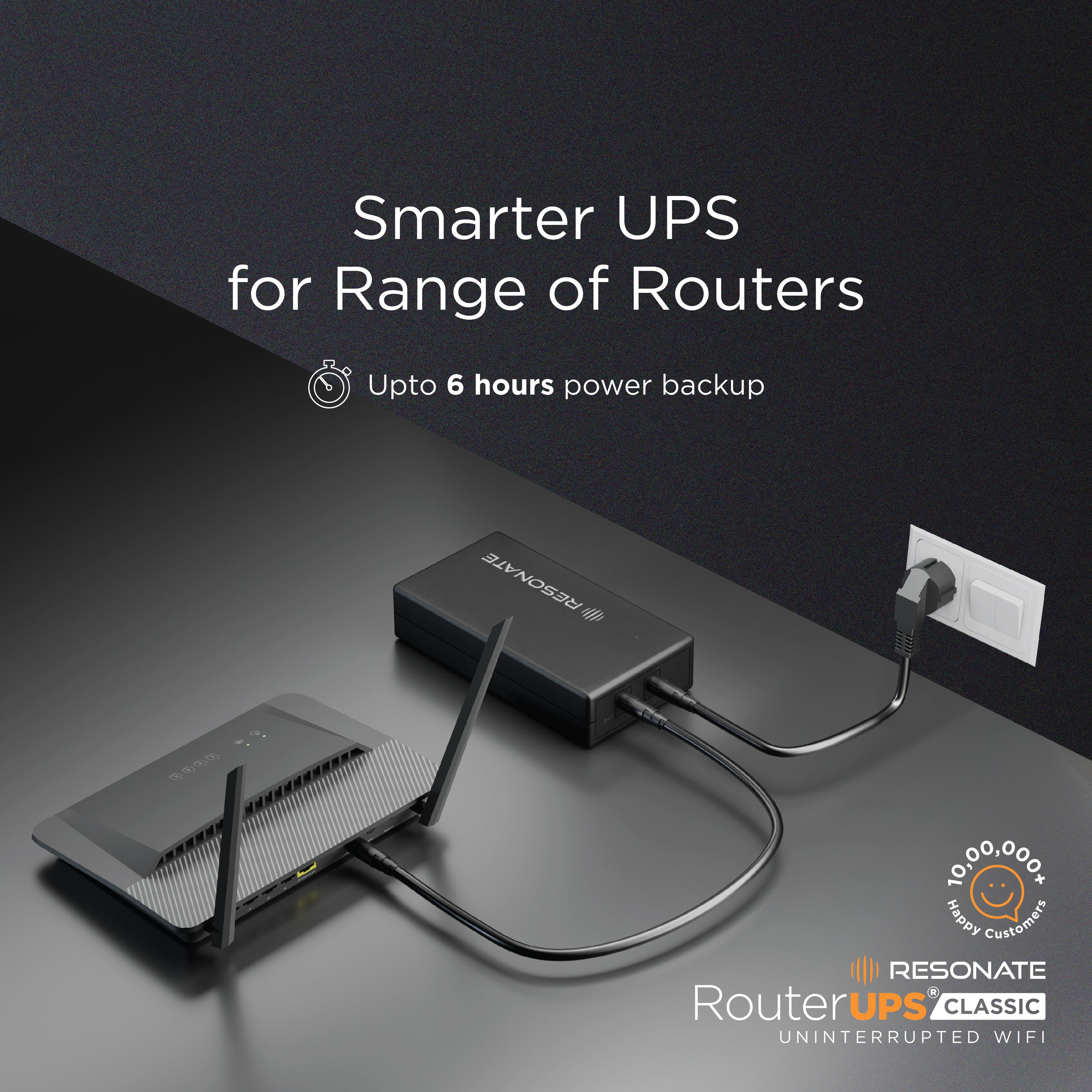 Resonate RouterUPS® Classic CRU5V provides up to 6 hours of uninterrupted backup for 5V WiFi routers, ONTs, Raspberry Pi, and other IoT devices. Compact and plug-n-play, it ensures seamless connectivity for work, gaming, streaming, and study during power cuts. Certified for safety with CE, RoHS, and BIS, it offers reliable performance and peace of mind.