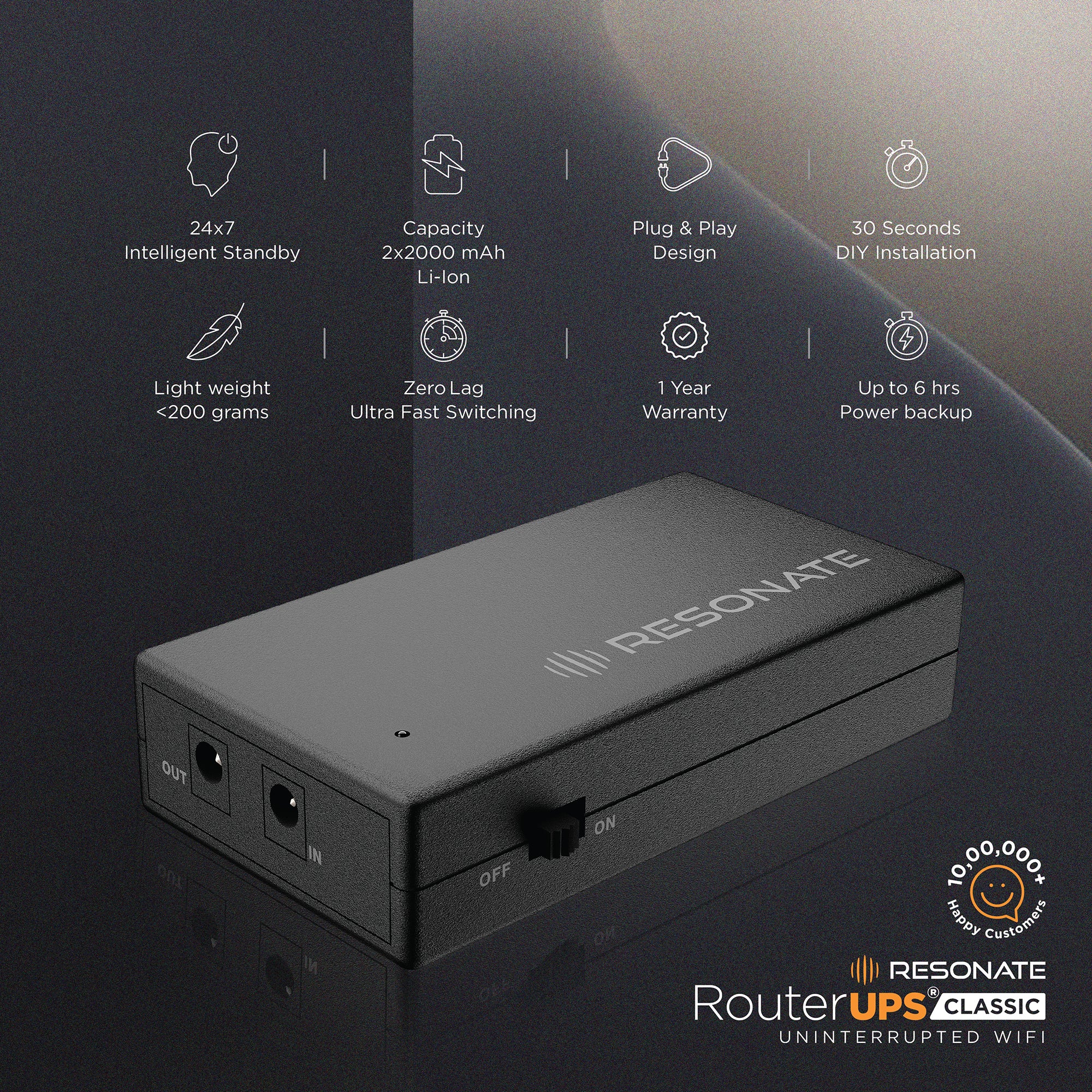 Resonate RouterUPS® Classic CRU5V | Up to 6 Hrs Backup | 4000mAh Mini UPS for 5V WiFi Routers, ONTs, Raspberry Pi & IoT Devices | BIS Certified